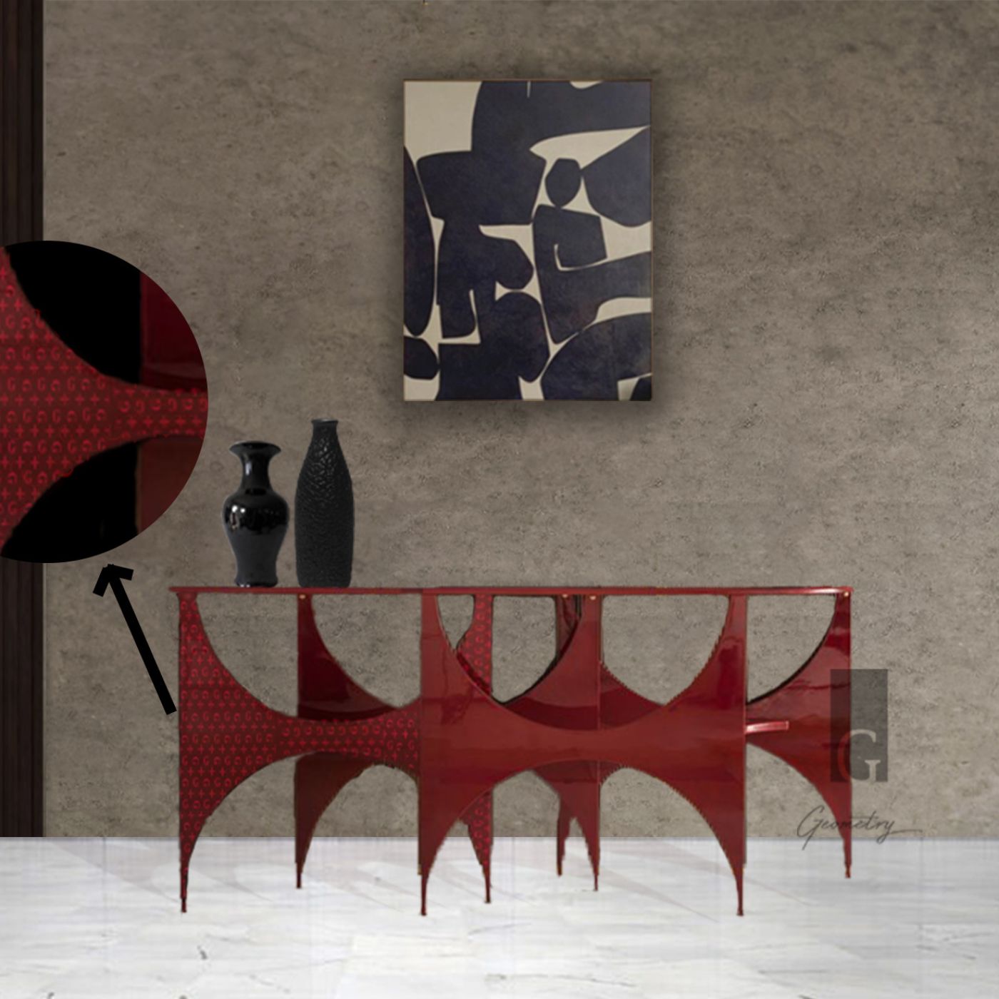 The Lahu Muh Lagg Gaya Console isn’t just furniture — it’s theatre in red. With its high-gloss crimson body and sweeping arches, it feels like a scene straight out of cinema, where drama and elegance collide. Each angle catches the light, each curve whispers luxury, and together they make a statement impossible to ignore. This is the kind of showstopper that doesn’t just sit in a room — it defines it. Choose the monogram finish to go beyond décor — it becomes your personal insignia, your mark of class, a symbol of standing. This isn’t just a console; it’s the world noticing you’ve arrived.