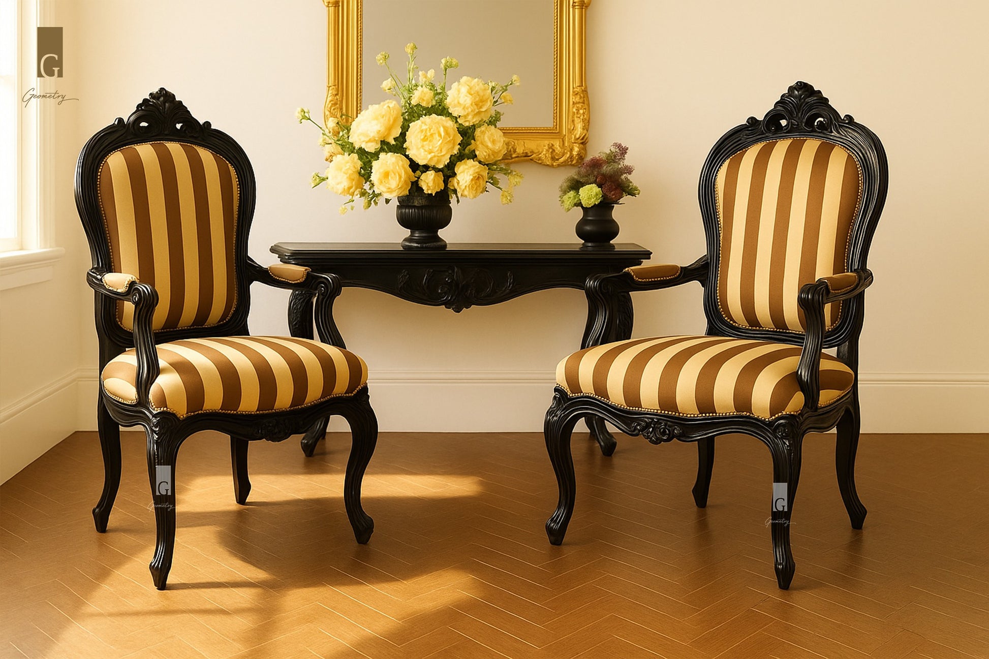 Why settle for plain when you can sit in stripes? The Maison Stripe Armchair is a bold French beauty carved in teakwood, with plush upholstery that makes lounging feel like fashion week. Its dramatic stripes and cabriole curves bring instant character to your space — place it in your lounge, study, or even as a statement dining head chair, and watch the compliments roll in. Custom colorways available, because true luxury is always personal.