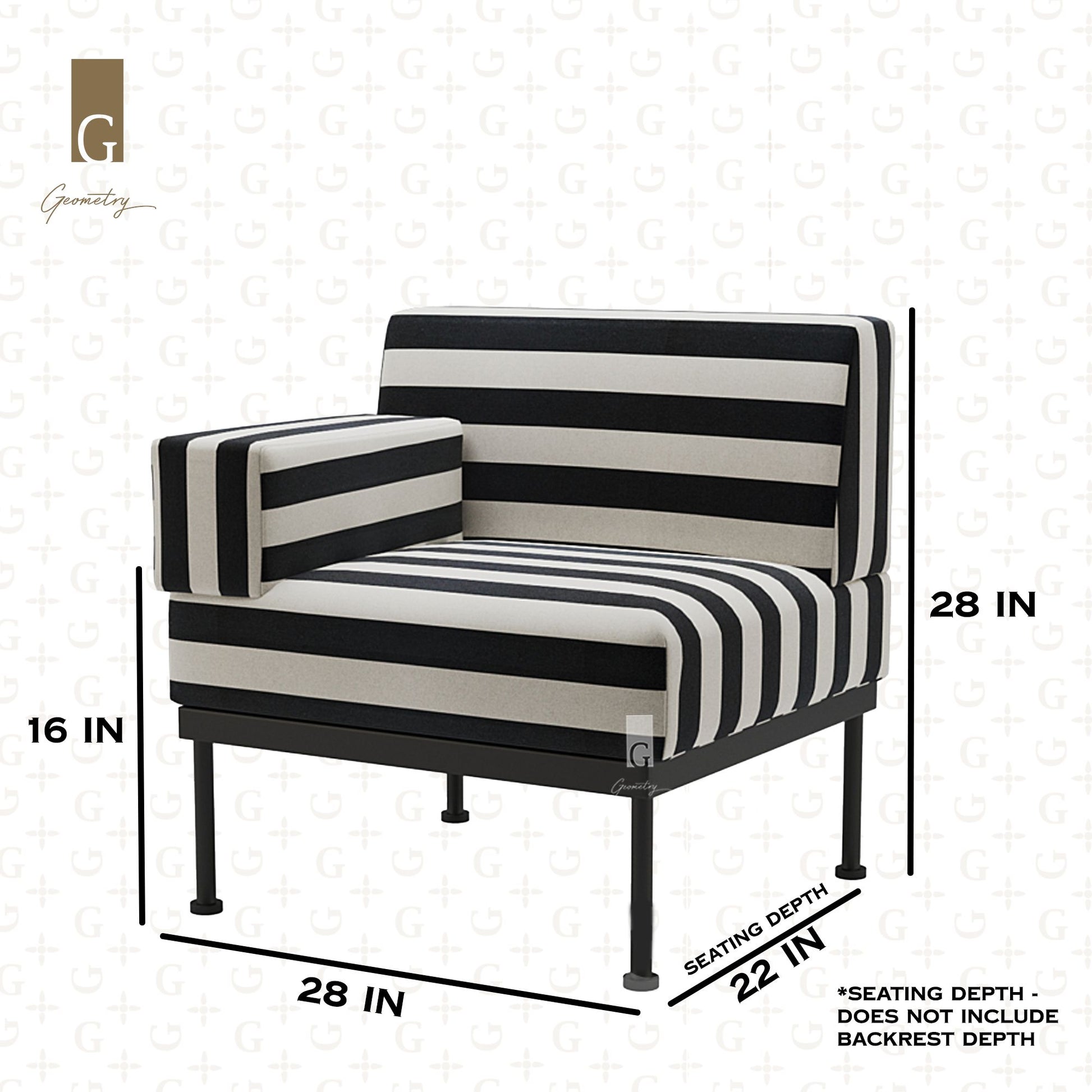 The Vogue Accent Chair is where couture meets comfort. With its bold stripes and sleek silhouette, it feels like a fashion editorial brought alive in your space. Crafted with Greenply 710 marine ply and a reinforced metal frame, this chair is as reliable as it is glamorous.